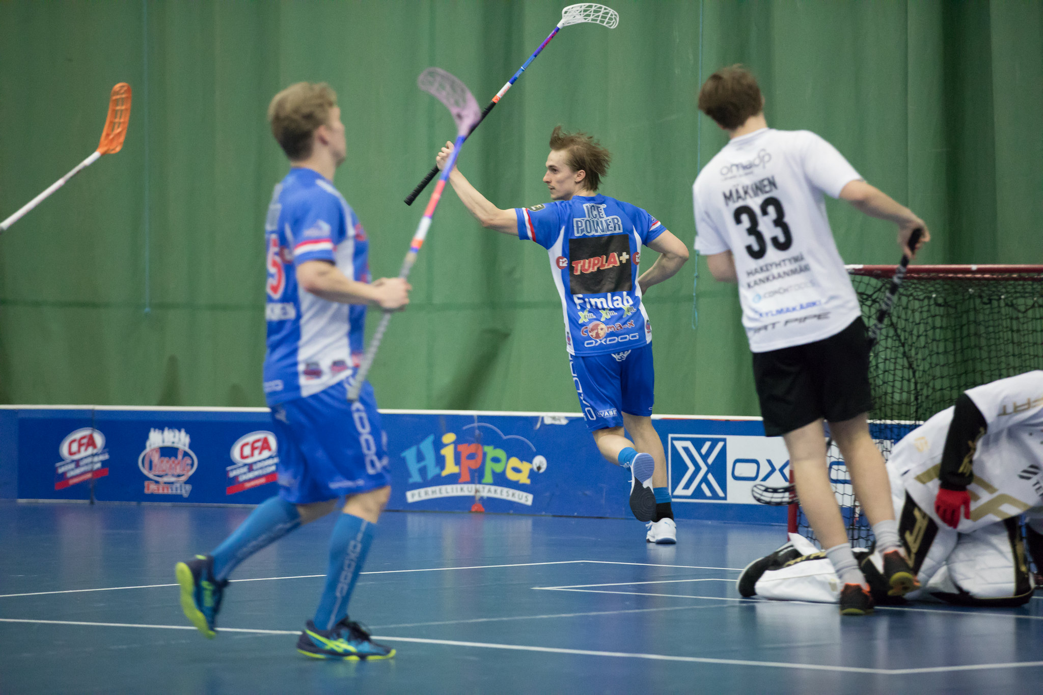 Nokian KrP selvitti Happeen ensimmäisen ottelupallon ja kavensi voitoiksi 3-2 kaadettuaan keskisuomalaiset kotonaan 6-5 Henri Johanssonin jatkoaikamaalilla. Komeita osumia tarjoilleessa ottelussa KrP näytti jo tarraavan voittoon, kun Vili Liponen pyörähteli alivoimalla läpi koko kentän ja iski rystyläpärillä kotijoukkueen 5–3-johtoon. Jami Manninen oli kuitenkin eri mieltä, kun hän ensin vielä saman ylivoiman aikana pommitti kavennuksen ja kaksi ja puoli minuuttia ennen loppua nosti pelin tasoihin. Jatkoaikaa ehdittiin pelata kuusi minuuttia, ennen kuin Joona Rantala lähetti laidassa pystyavauksen Henri Johanssonille, joka polki karkuun puolustaja Iiro Lankisen roikkumisesta välittämättä ja nosti pallon takayläkulmaan. Joona Rantala oli kolmella maalisyötöllään voittajien tehomies, vieraista kokosi Peter Kotilainen tutusti 2+2.