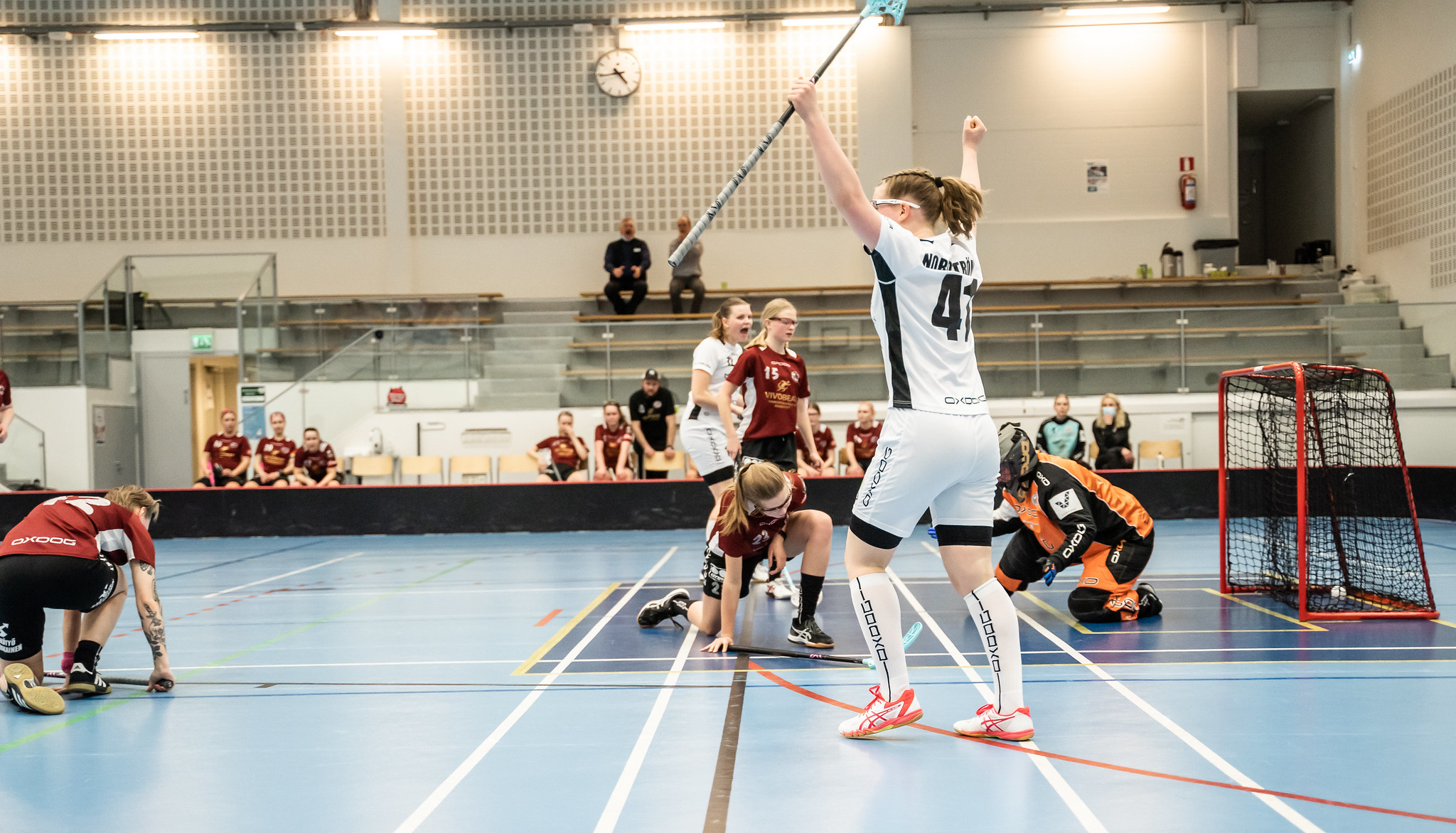Iltapäivän katkopelissä laukoi Victoria Blomqvist Siniketut avauserässä johtoon, ja toisen avauspuolikkaalla repesi eroksi jo 0-5 Julia Storskrubbin osuttua kahdesti ja Lina Nybyn sekä Noora Lapinkosken kerran. Katja Garton avasi pelin puolivälissä lohjalaisten maalitilin, mutta mihinkään kiriin ei LoSB enää noussut. Kotijoukkueen yrittäessä ottelun lopussa ilman maalivahtia iski Emma Vähäkangas Blue Foxille vielä kuudennen maalin ennen kuin LoSB hyvästeli pääsarjan Cecilia Johanssonin 2–6-kavennuksella.