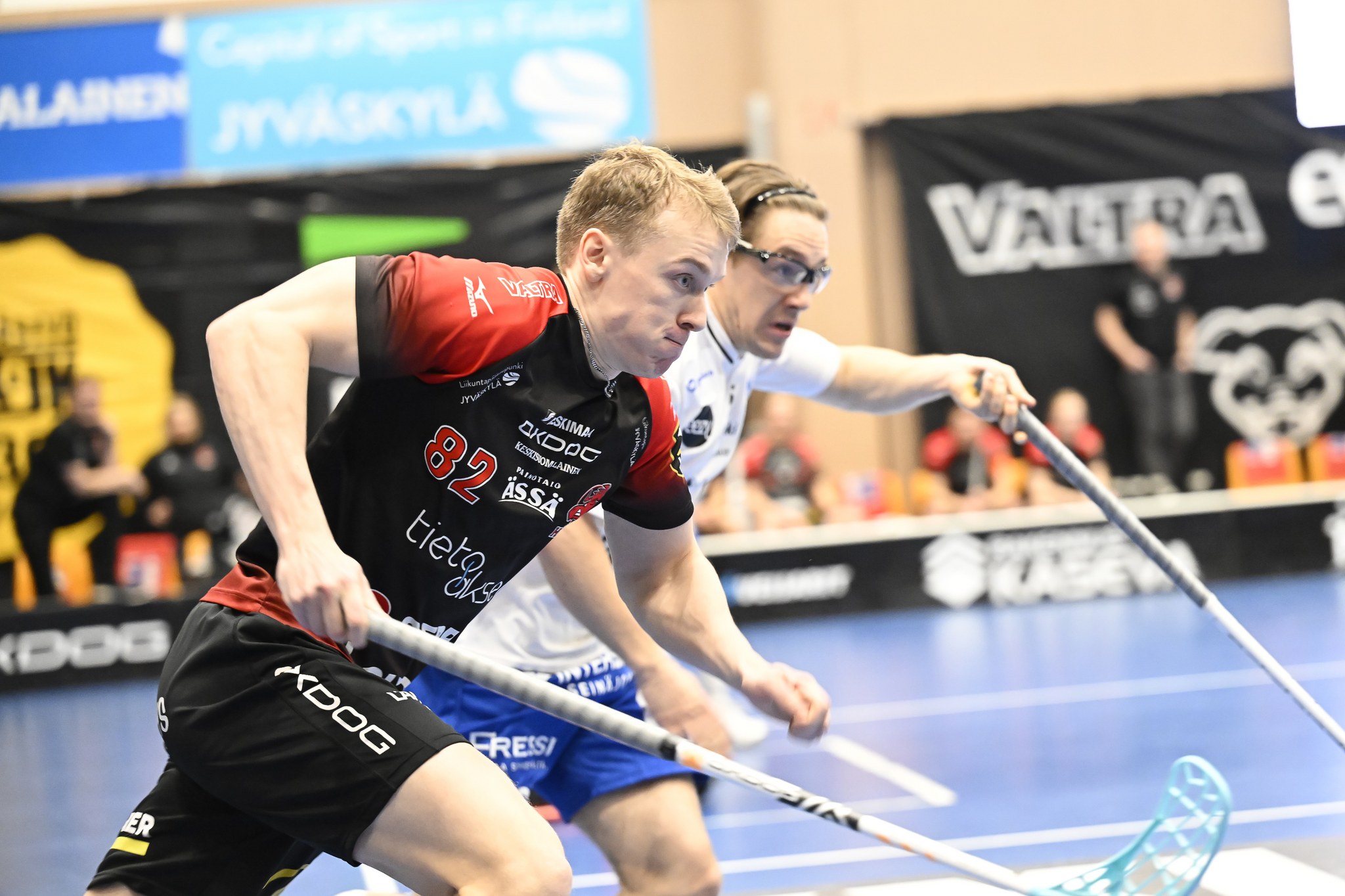 Jyväskylän illan avausmaalin sivalsi Jymylle Jussi Lassila, mutta sitten johti kapteeni Jonne Junkkarinen omiaan edestä laukomalla ensin ylivoimalla pelin tasoihin ja toisessa erässä oman pallonriistonsa ja vastaiskun päätteeksi Happeen johtoon. Kaksi erää ei kuitenkaan riittänyt ratkaisuun, kun Kalle Vaarala karkasi suoraan jäähyltä läpiajoon ja sijoittamaan Jymyn tasoituksen. Happeen ratkaisijaksi nousi päätöserässä Markus Salmi, joka sivalsi ensin siivestä takakulmaan uuden johdon ja vielä keskeltä sektoria tilanteeksi 4-2. Yritys ilman maalivahtia toi vieraille vielä Matias Mäenpään kavennuksen kaksi ja puoli minuuttia ennen loppua, mutta niin oli tuloksena myös Matti Minkkisen tyhjiin sivaltama Happeen viides osuma.