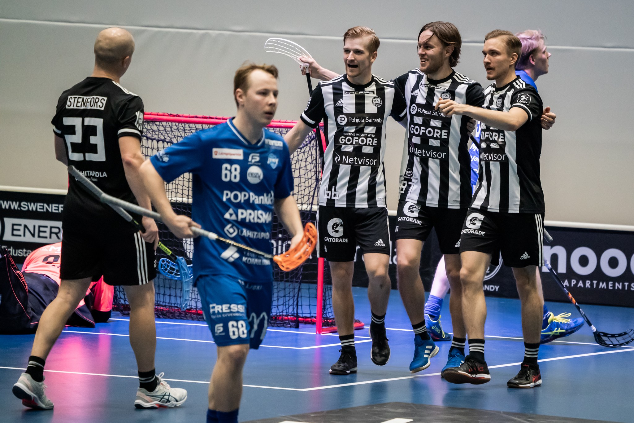 Johtoasemasta tappioon suistui myös Karhut, joka johti Westend Indiansia vastaan avauserän jälkeen 3-2 taipuakseen lopulta peräti 4-11. Käännekohta oli toinen erä, jossa Indians takoi porilaisten verkkoon kuusi palloa ja lasketteli sitten päätösjaksolla loppumatkan pisteille. Espoolaisten 11 osumaan löytyi tänään peräti kymmenen eri maalintekijää Valtteri Kainulaisen (1+2) ja Perttu Puskan (1+2) kerätessä kolme pistettä mieheen.