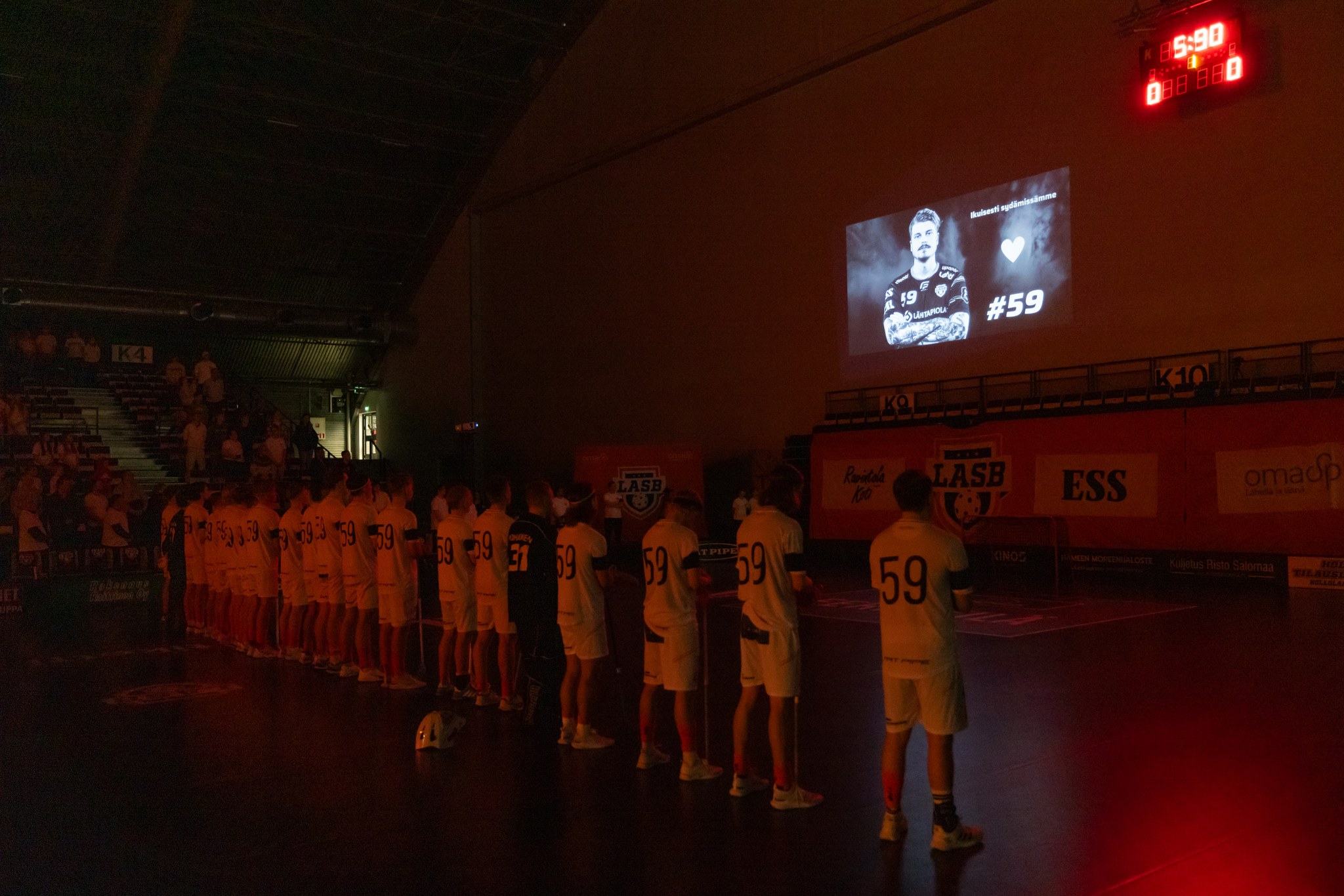 Illan otteluun oli vapaa pääsy, ja ottelupöytäkirjaan saatiinkin merkitä komea lukema 1 159 katsojaa. Yleisöä oli ennalta pyydetty pukeutumaan valkoisiin paitoihin, ja siltä lehterit myös näyttivät. Miikka Pentikäisen pelinumero 59 nähtiin tänään surunauhan ohella myös kaikkien LASB-pelaajien pelipaidoissa.