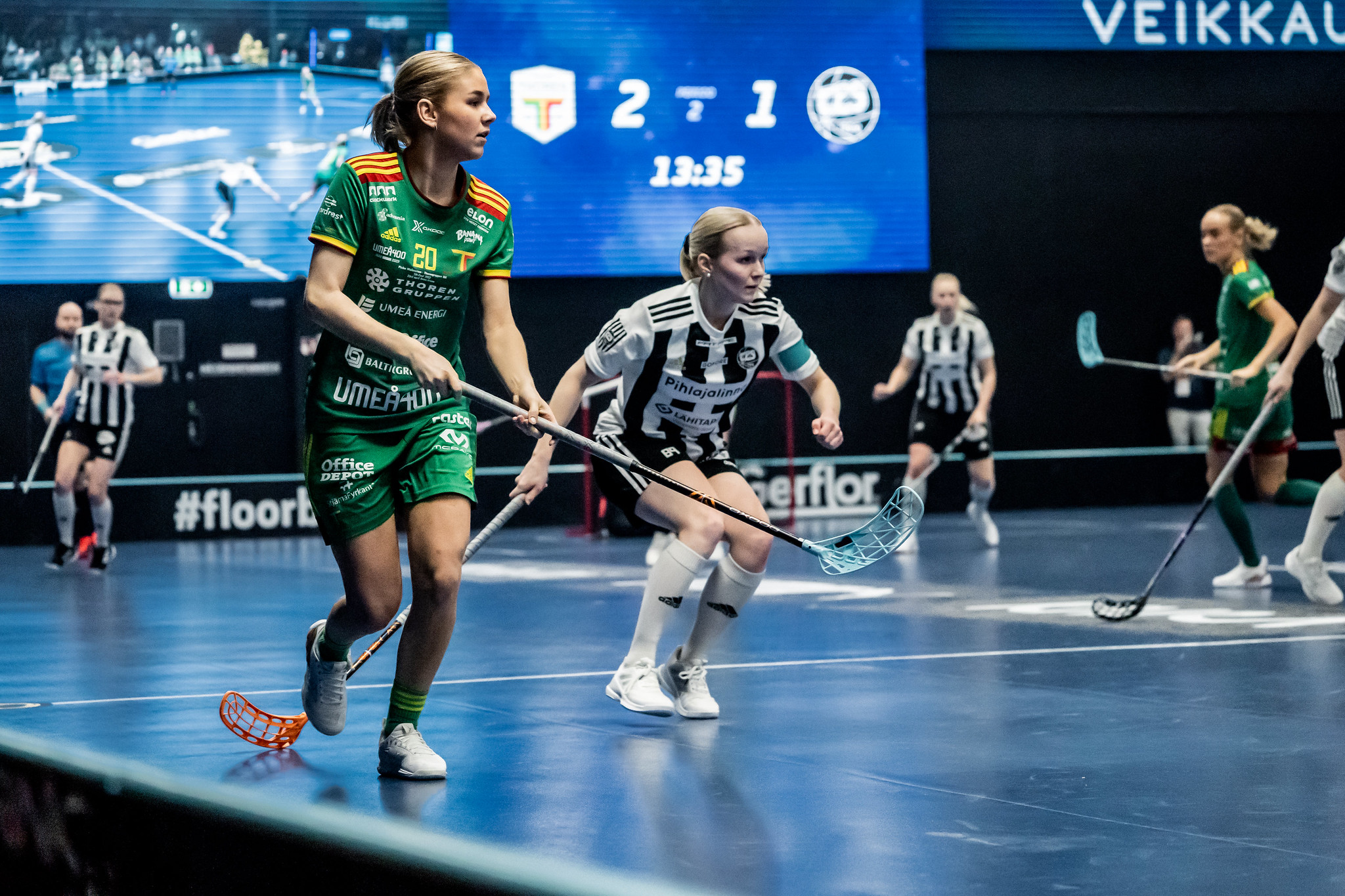 Lempäälän loppuottelun avausmaalin iski ylivoimalla TPS:n Milla Nordlund, mutta vielä ennen taukoa Veera Kauppi napautti ilmasta tasoituksen. Toisessa kostautui vuorostaan TPS:n jäähy Emelie Wibronin laukoessa uumajalaiset ylivoimalla edelle, ja Moa Johansson jatkoi Veera Kaupin syötöstä eron jo kahteen. Noora Rantanen nostatti kuitenkin TPS:n toiveet kiskaisemalla Jenna Saarion pitkästä poikkisyötöstä etutolpan tyveen toisen tauon tilanteeksi 3-2. Ruotsin mestarit karkasivat lopulta vasta ottelun viimeisillä hetkillä. Runsaat kuusi minuuttia ennen täyttä aikaa Emelie Wibron viimeisteli vastaiskusta iltapäivän toisensa, ja juuri ennen summeria Veera Kauppi ja Oona Kauppi nautiskelivat vielä loppunumerot.